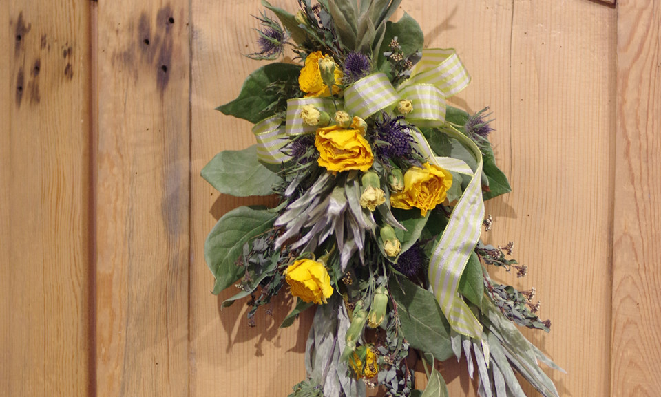 過去記事 【6月】 ベーシック 5月 26, 20157月 22, 2015LIBELLULE 黄色いバラとグリーンが鮮やかなレモンリーフを使ってラインが美しいスワッグアレンジを作ります。梅雨の時期に定番のデザインです。 レッスンお申し込みフォーム お名前 (必須) メールアドレス (必須) 電話番号(必須) ご希望のレッスン(必須) ご希望のレッスンの日時(必須) メッセージがあればお書きください