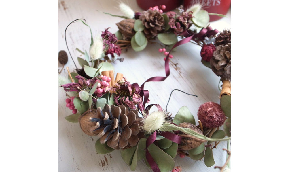 シナモンやペッパーベリーも入れて、ナチュラルなオータムリースを作りましょう♪