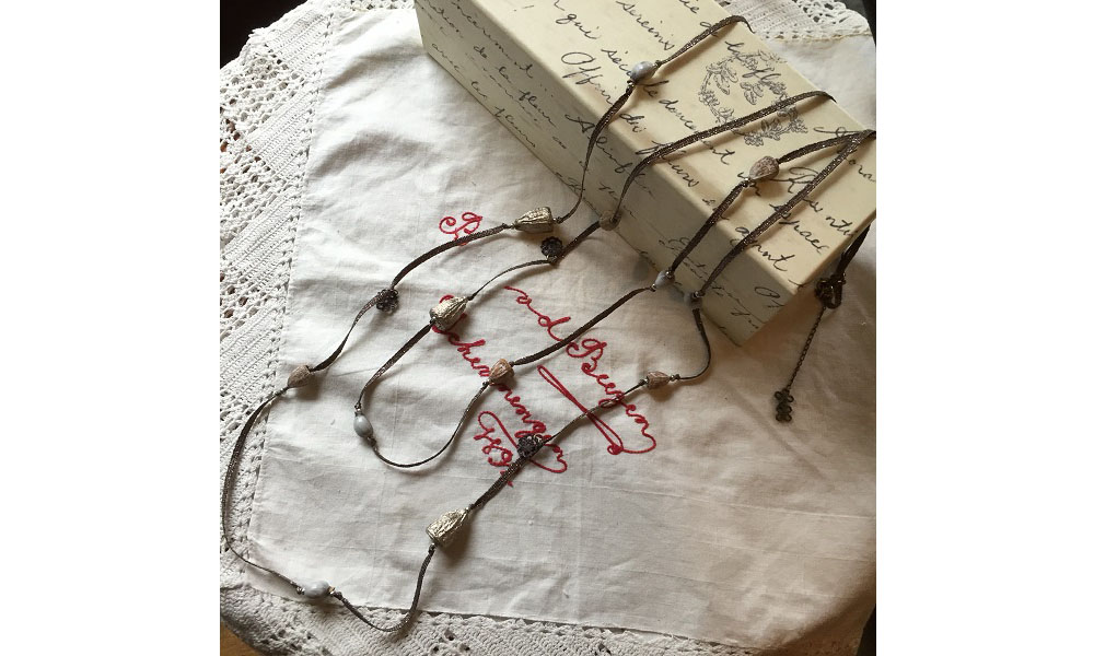 リボンに繋ぐ2連のロングネックレス